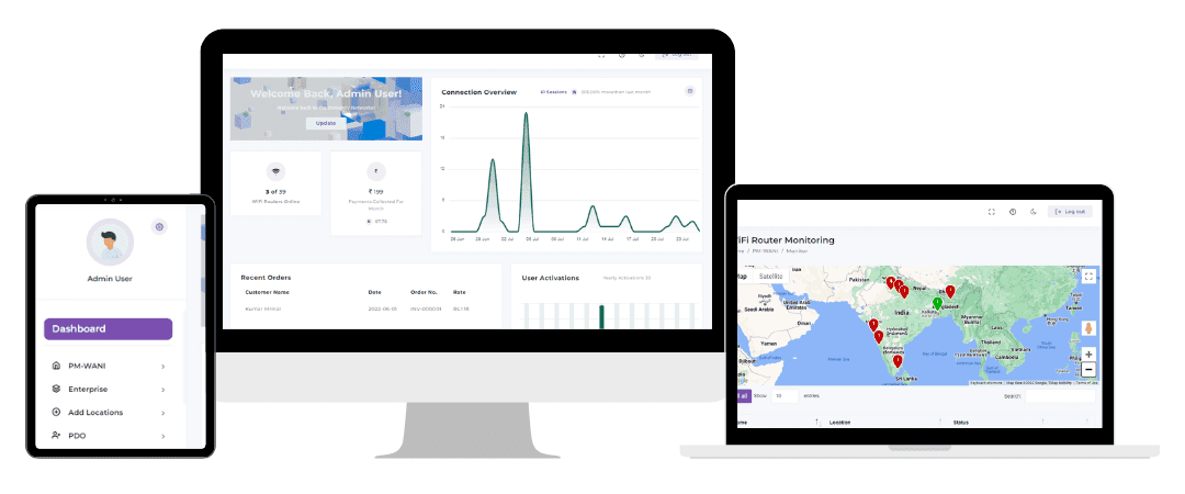 Develop an app for PM- Wani Scheme registration, authentication of Wi-Fi internet users and help to discover PM WANI compliant Wi-Fi public hotspots in the neighbourhood.