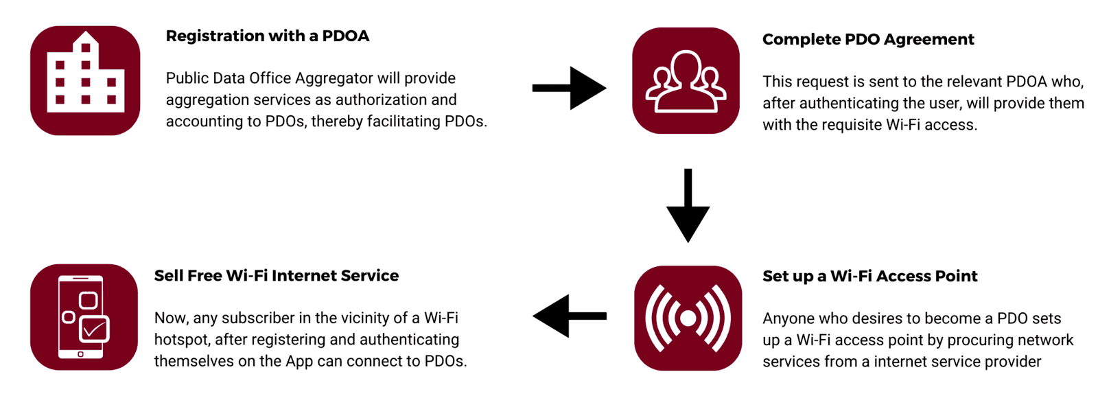 Public Data Office will establish, maintain, and operate PM WANI Wi-Fi Access Points and provide internet services to users by procuring from telecom or internet service providers.